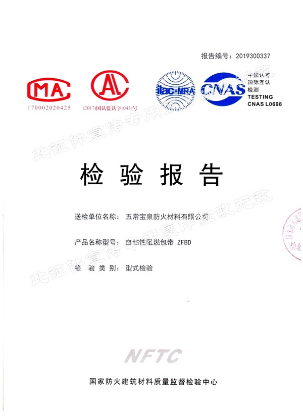 企業簡介 五常寶泉防火材料有限公司(黑龍江省寶泉消防設備有限公司)是主要制造、經營、銷售防火阻燃材料系列產品。其中以自粘性阻燃包帶(ZFBD)、阻火包(PFB)、有機防火堵料(SFD)、室內超薄型鋼結構防火涂料(NCB(BCF)-1)為主要產品。寶泉牌防火材料系列產品是普通防火材料的更新換代產品,防火性能優異,具有普通防火材料沒有的諸多優點:施工方便、經久耐用、耐火極限高、熱傳導率低、耐腐蝕、抗老化、無毒無害、環保、可以連續施工等特點。產品廣泛應用于電力企業(各型電廠、輸變電公司、電建公司、電力公司)、石油化工企業、冶金業、通訊業、地鐵、隧道、...